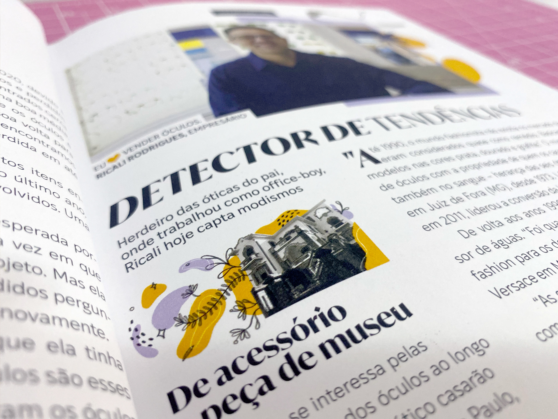 Collection of illustrations for the book "I <3 glasses", published by Editora MOL with Óticas Carol (a glasses company in Brazil). The concept was to illustrate the story of the characters in the book in a fun and dynamic way. I used a mixture of collage and illustration